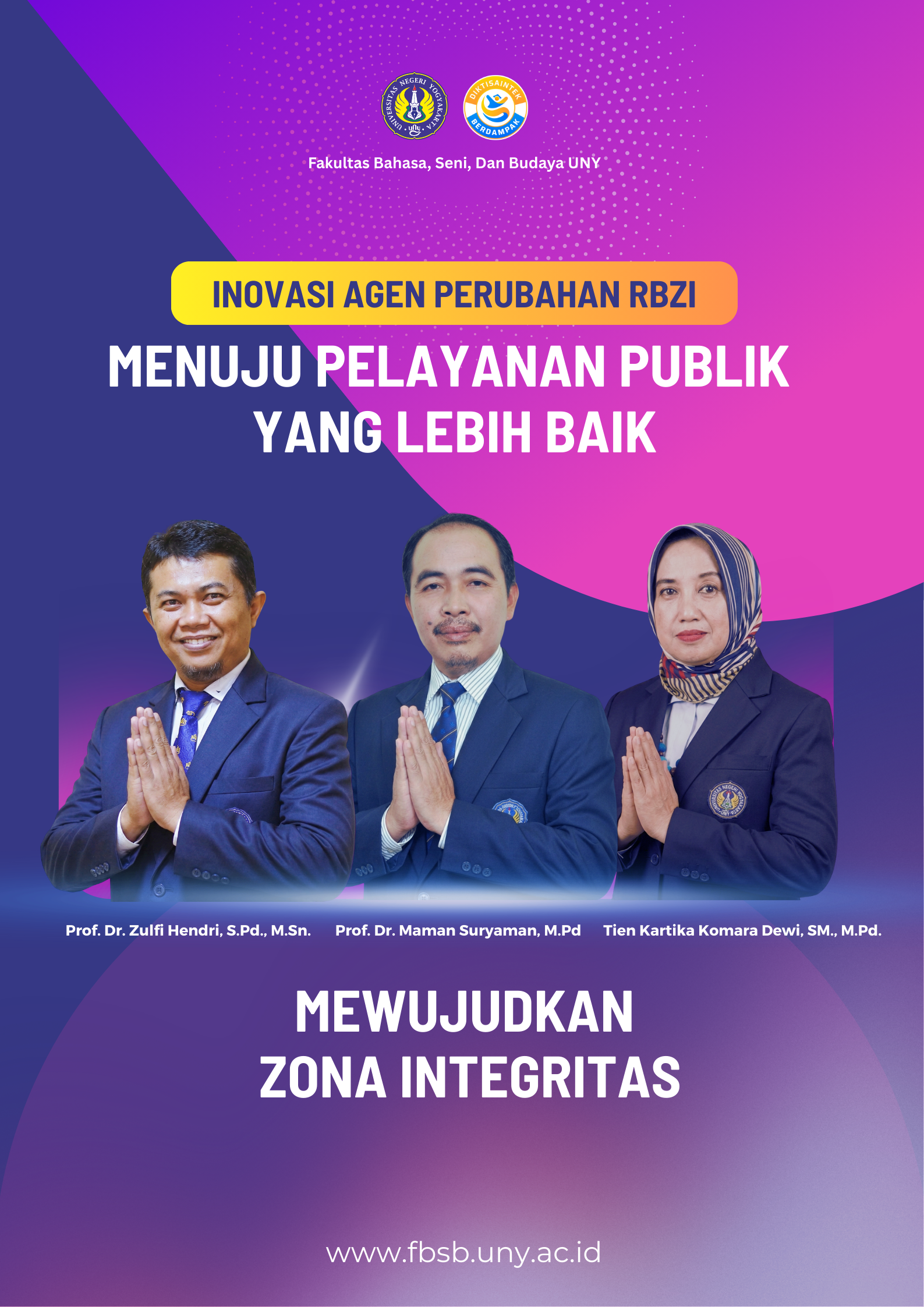 Inovasi tanpa Batas Reformasi Birokrasi Zona Integritas (RBZI) membutuhkan komitmen dan upaya yang berkelanjutan untuk menciptakan birokrasi yang bersih, akuntabel, dan berkinerja tinggi. Agen perubahan memainkan peran krusial dalam menggerakkan inovasi tanpa batas yang diperlukan untuk mencapai visi dan misi Fakultas Bahasa, Seni dan Budaya Universitas Negeri Yogyakarta.